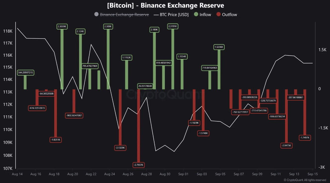 Binance saw nine days of “constructive outflows” for Bitcoin leading up to the FOMC meeting, a trend that appears to be a “major driver behind Bitcoin’s recent bounce from $108k to +$115k,” according to onchain insights platform CryptoQuant.