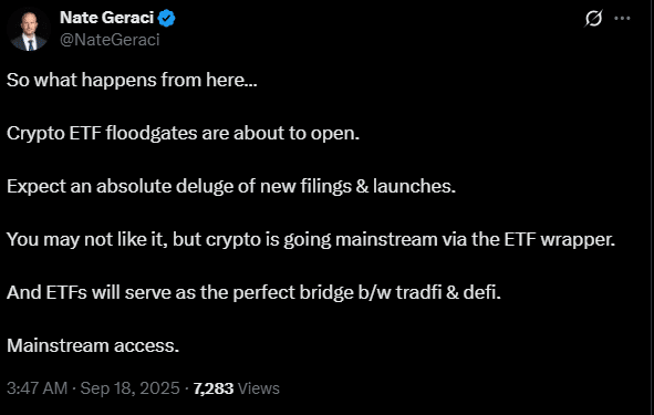 On his part, ETF analyst Nate Geraci added SEC will unlock ‘crypto floodgates’ that will usher in mainstream access.