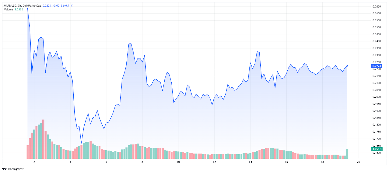 The WLFI token is down over 28% since launch and traded at $0.2223 at the time of writing, CoinMarketCap data shows.