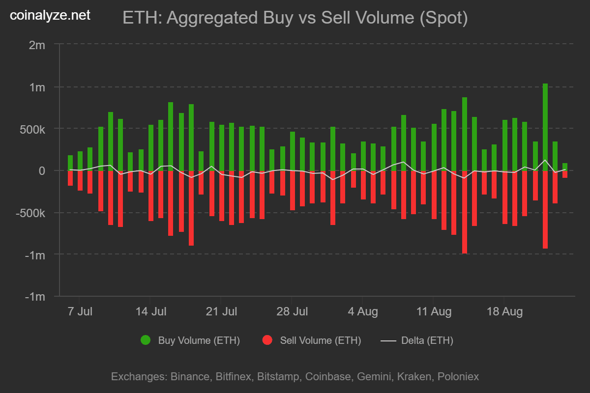 As a result, Ethereum recorded a negative Delta of -8.2k ETH, a clear sign of aggressive selling activity.