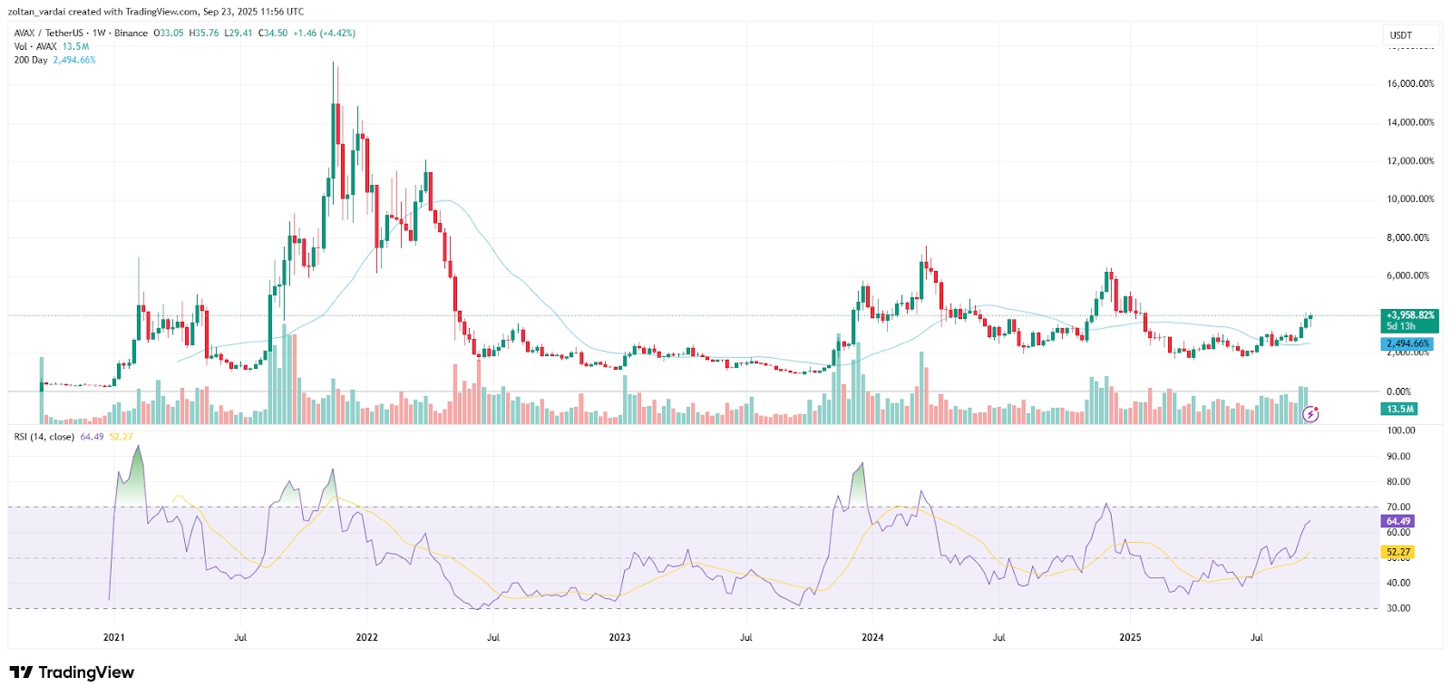 Despite the latest wave of corporate adoption, the AVAX token remains over 76% lower than its all-time high of $146 set almost four years ago on Nov. 21, 2021, TradingView data shows.
