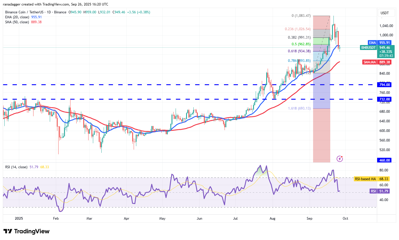 BNB (BNB) bounced off the 20-day EMA ($955) on Tuesday, but the recovery fizzled out at $1,034 on Wednesday.