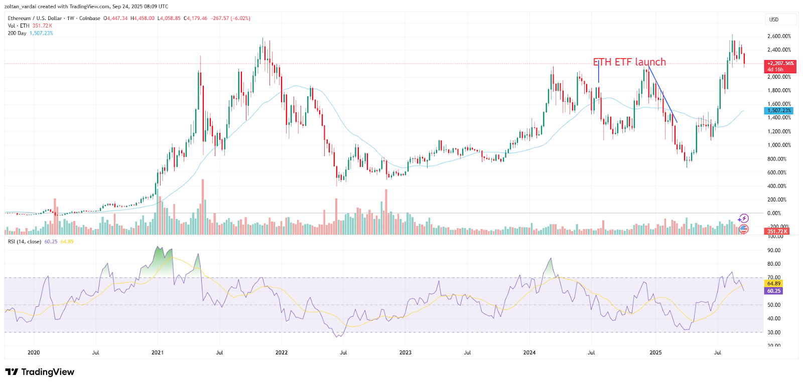 Ether has risen by about 108% in the past six months and traded at $4,177 at the time of writing, TradingView data showed.