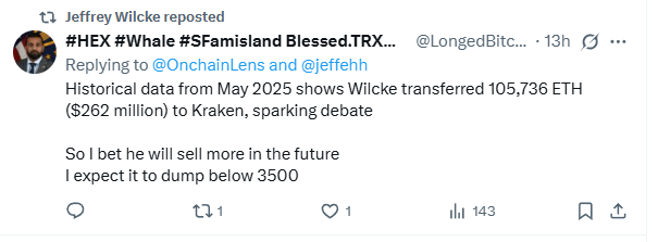 However, Wilke has since reposted a user’s comment on X that speculated “he will sell more in the future.”
