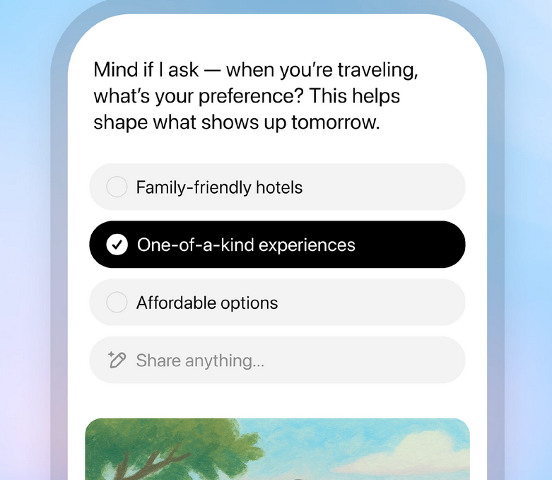 This is a new experience where ChatGPT can proactively deliver personalized daily updates from your chats, feedback, and connected apps like your calendar.