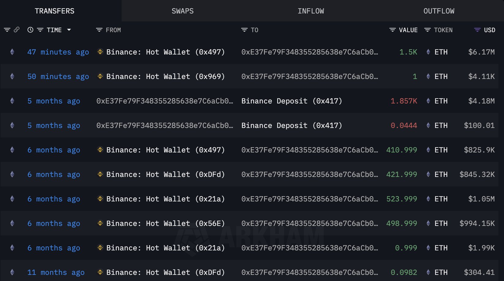 The other big story is that whale wallet 0xE37F (which sold 1,857 ETH at $2,251 just five months ago) has now re-entered. Earlier today, it grabbed 1,501 ETH for $6.17 million at $4,114 each.