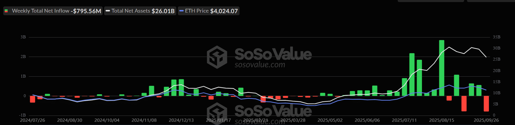 The products bled heavily this week, with outflows totaling $795.56 million — the biggest weekly loss since their inception.