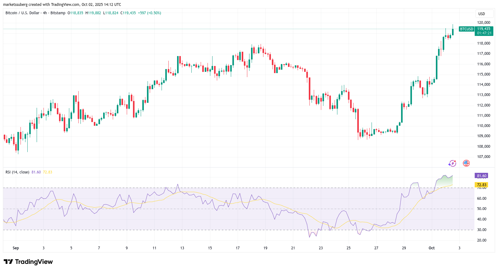 Bitcoin aims for a $120,000 reclaim as bullish momentum continues at the Wall Street open.