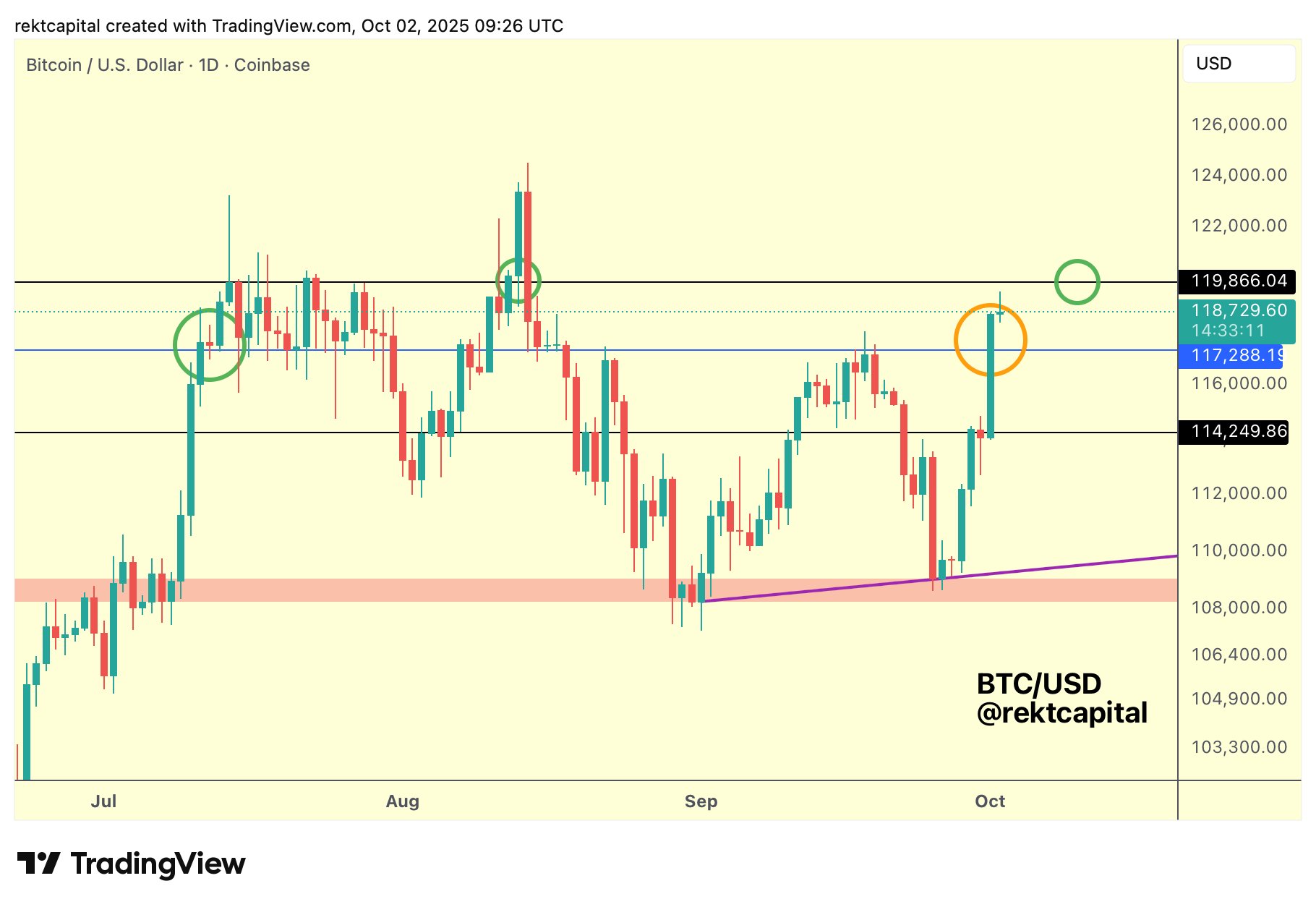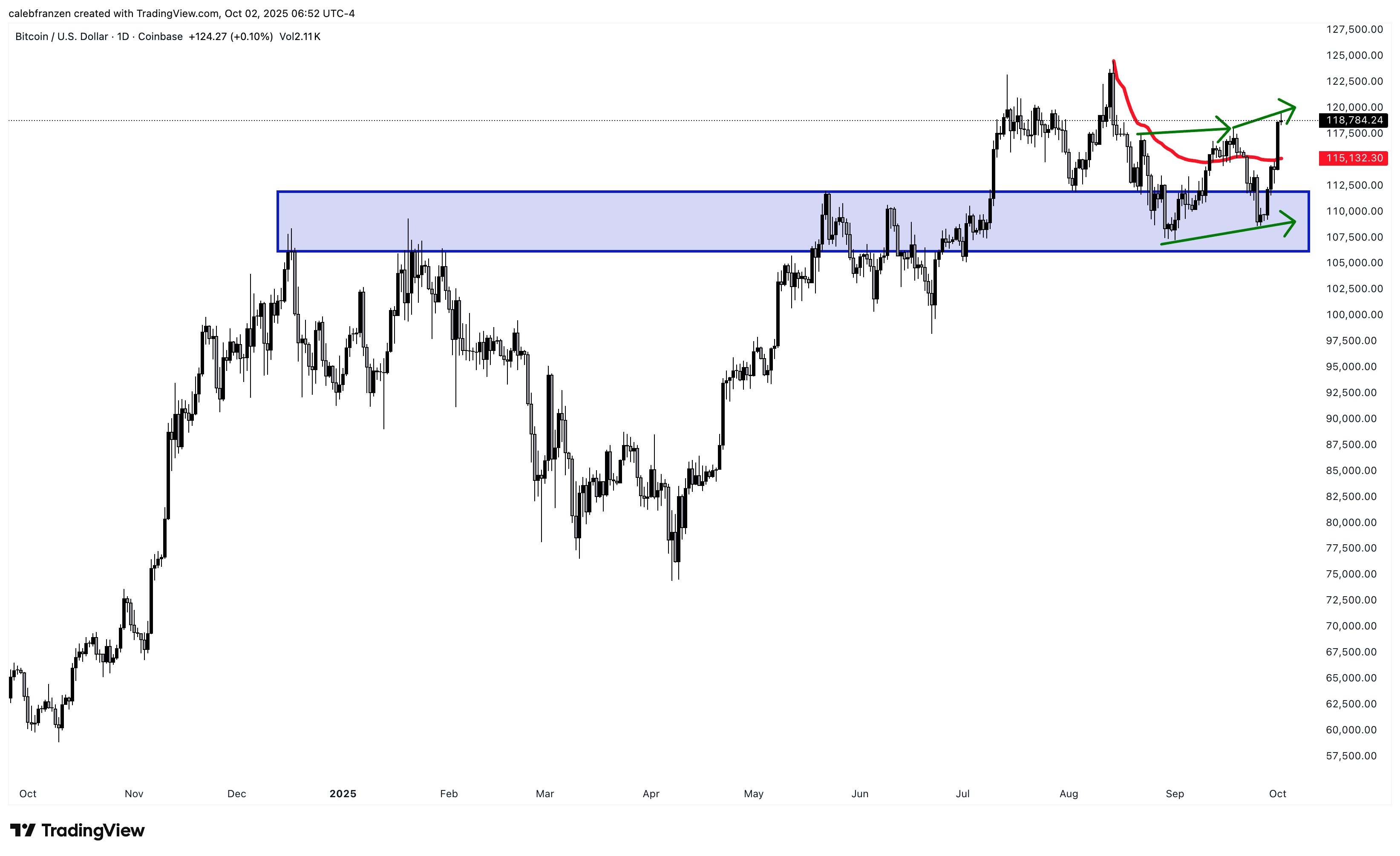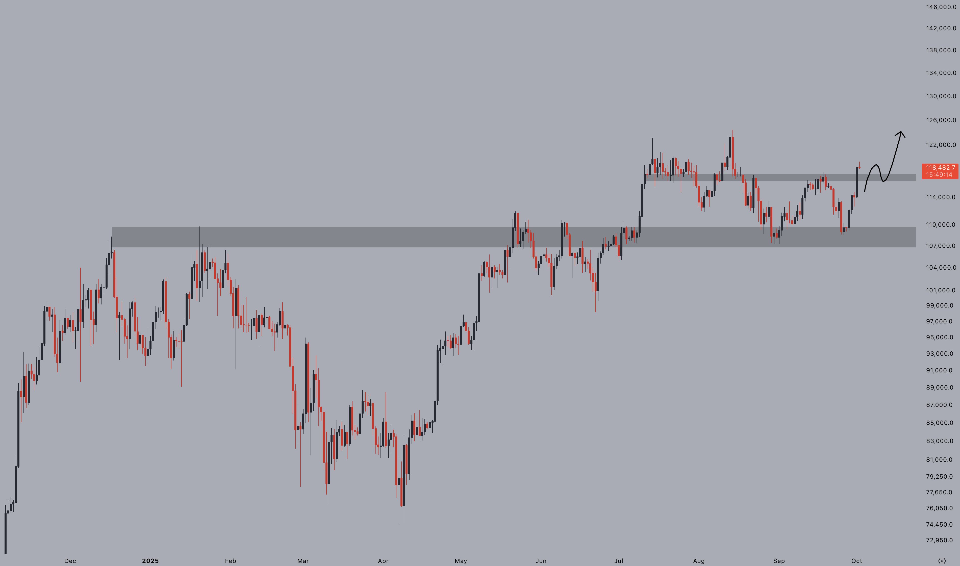 “Hold $118k from here, and new all-time highs are next. Uptober is here.”