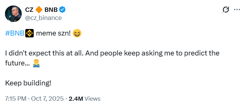 “What you’re seeing with ‘BNB meme szn’ is the market waking up to the fact that BNB Chain has become the leading ecosystem for trading.”