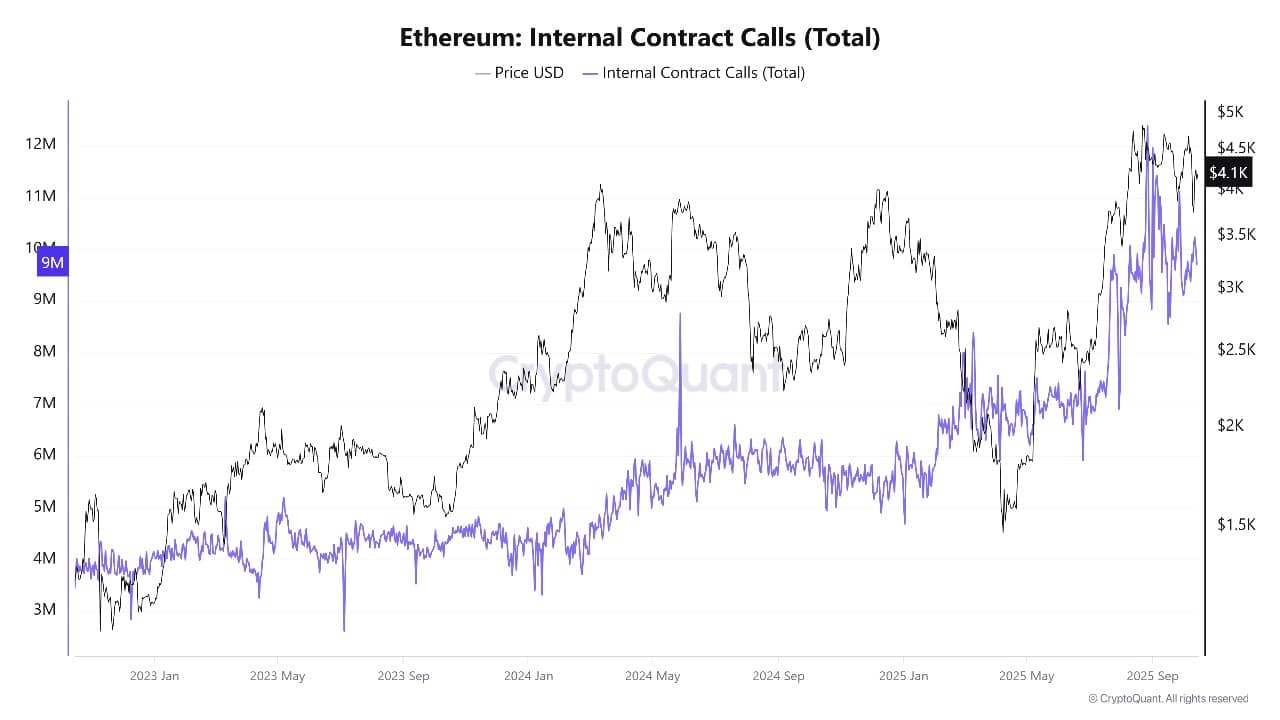 Besides that news, on-chain data supports ETH’s bullish price move. Network activity on Ethereum has hit “new normal” highs, with daily internal contract calls rising from 7 million to over 9.5 million since July. This means more users are interacting with smart contracts, DeFi, and real-world asset tokenization.