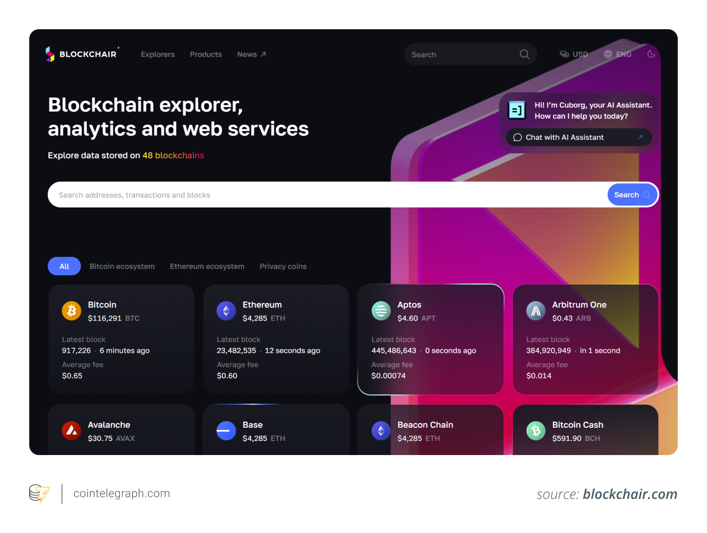 With Ethereum’s activity surging in 2025, block explorers have become more important than ever. Each of the top five platforms — Etherscan, Ethplorer, Blockchair, OKLink and TokenView — serves a different purpose for different users.