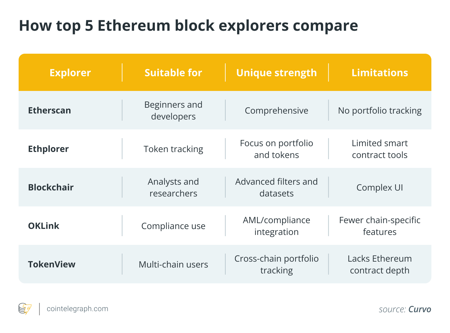 But how do you choose the right tool for the job? This article takes a look at the top five Ethereum block explorers of 2025, comparing them based on data depth, features and user experience.