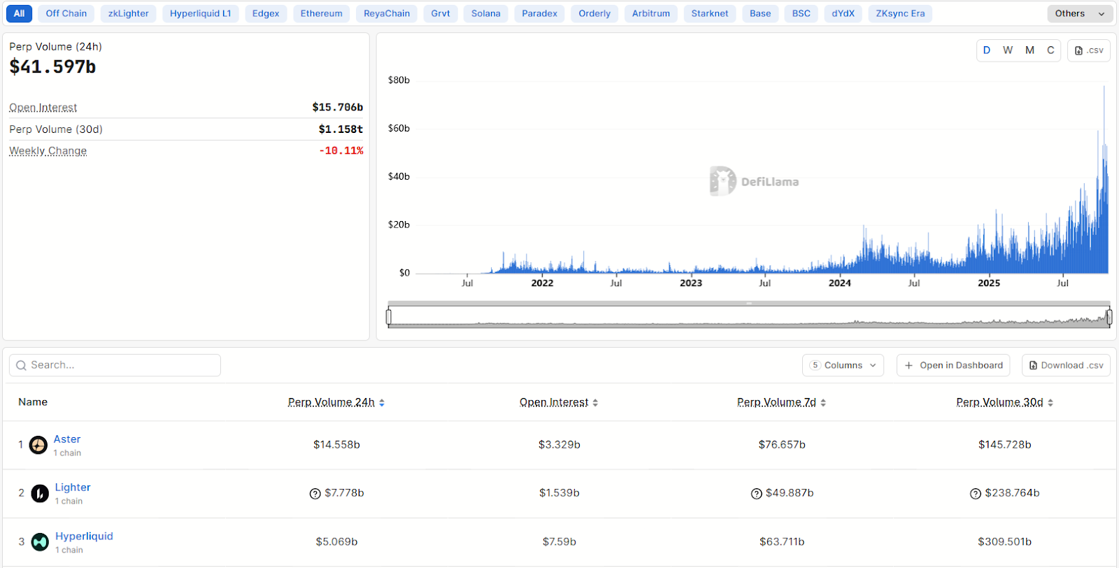 Meanwhile, rival DEX Aster, launched on Binance’s BNB Chain, has surpassed Hyperliquid to become the largest perp DEX with a $14.5 billion daily trading volume, nearly thrippling Hyperliquid’s 24-hour volume.