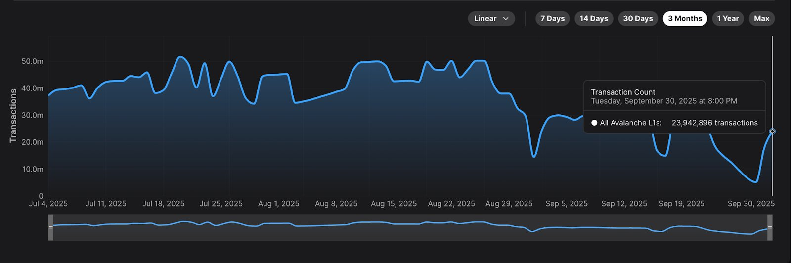 Avalanche’s onchain data points to significant user activity, averaging over 1 million daily transactions, with a peak of 51.6 million daily transactions during the past quarter, according to Nansen.